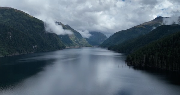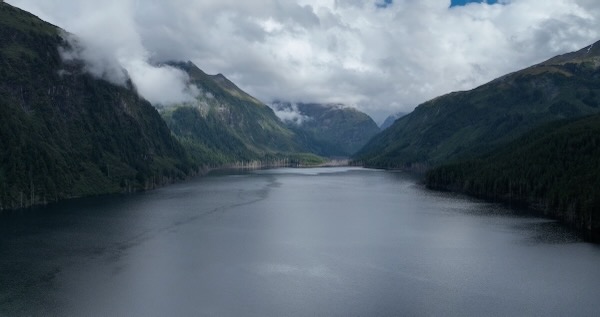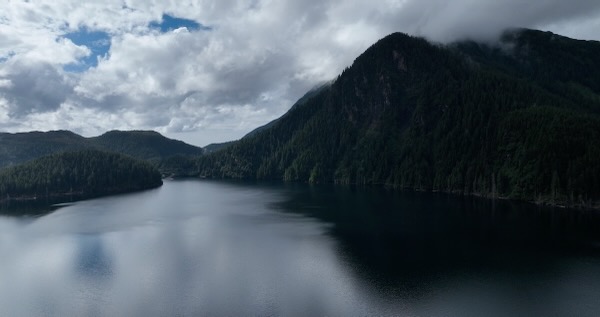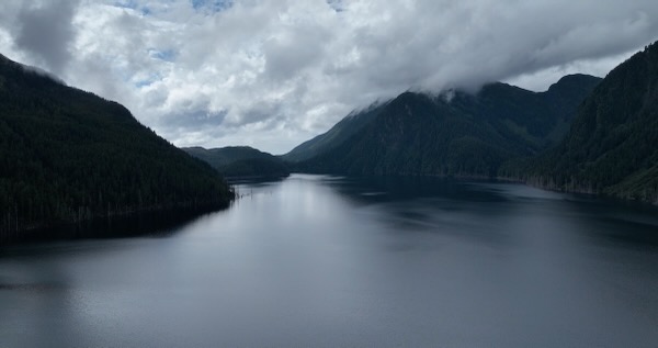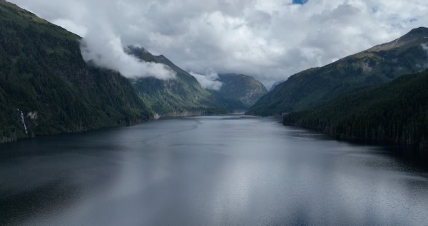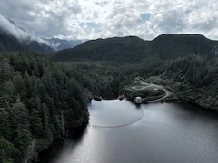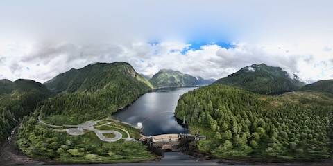 Flight over dam then looks down Blue Lake