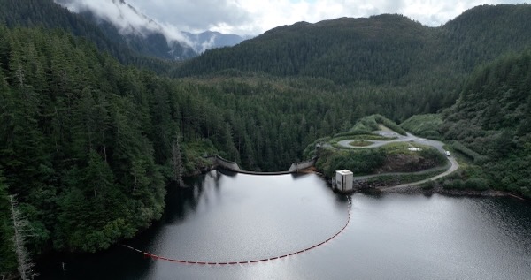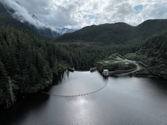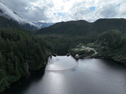 Flight over dam and follows Sawmill Creek