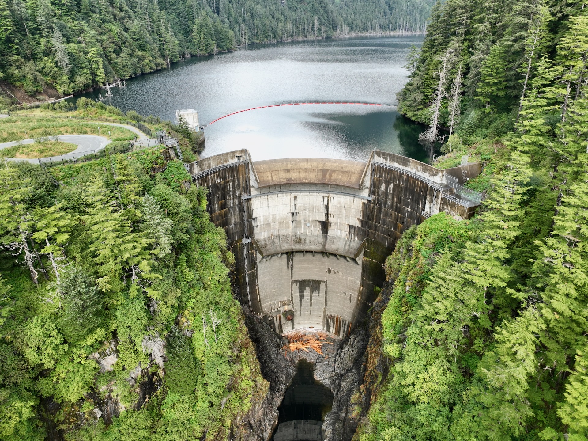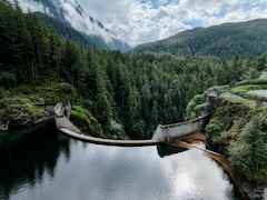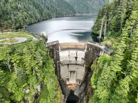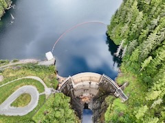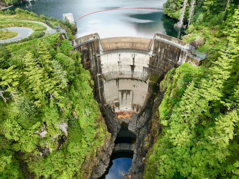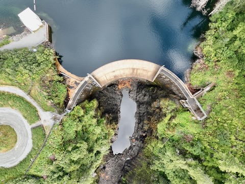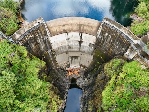 Flight up and down looking at dam
